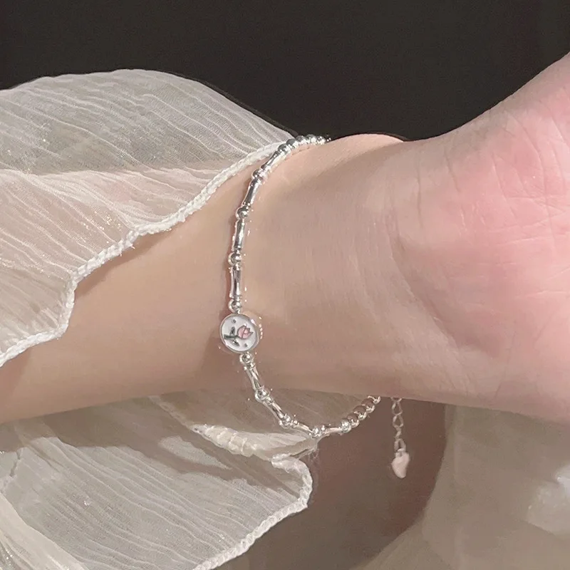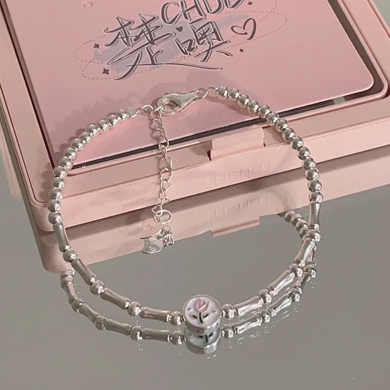100% Solid 925 Sterling Silver Hiphop Thick flower Pearl Bracelet for Women Men Vintage Handmade Hasp Bracelet Birthday Gift