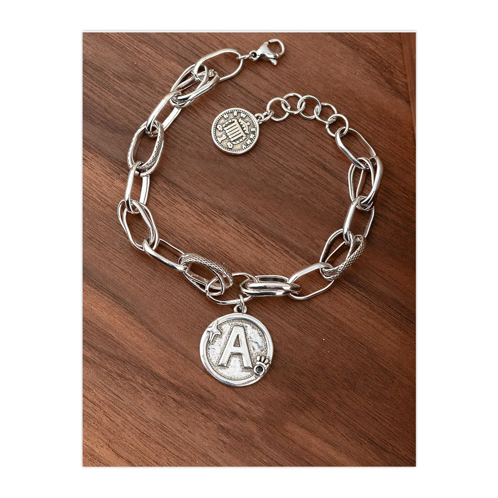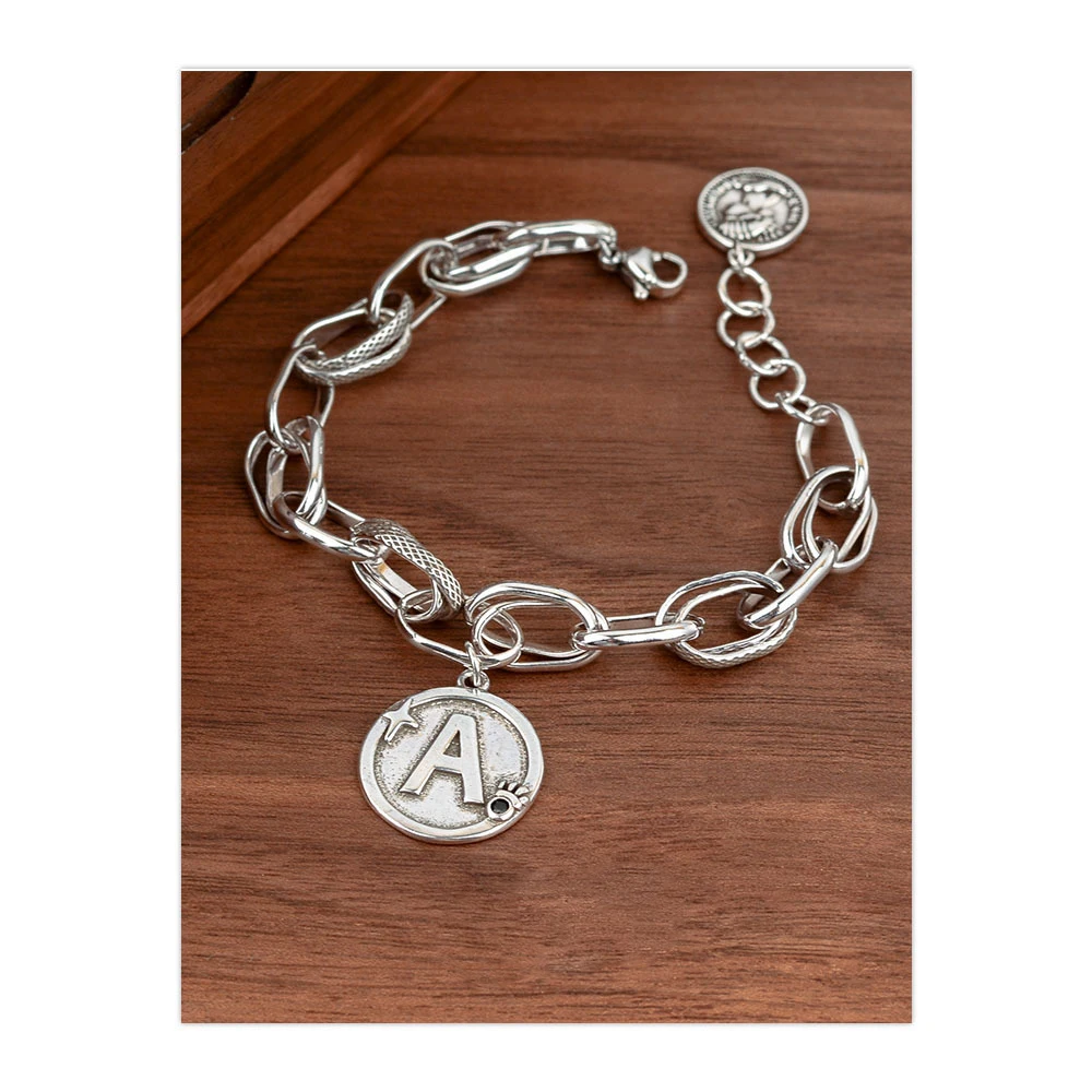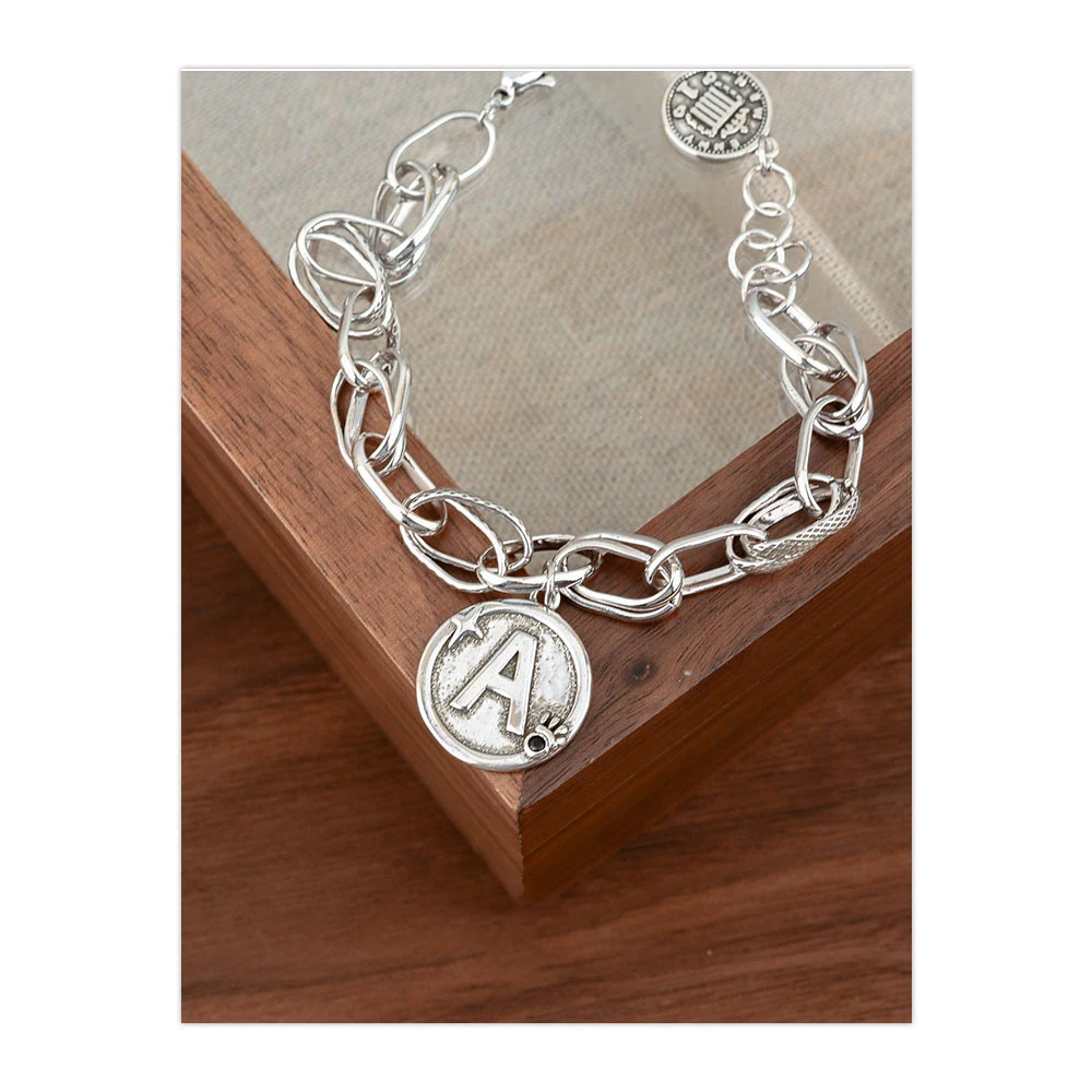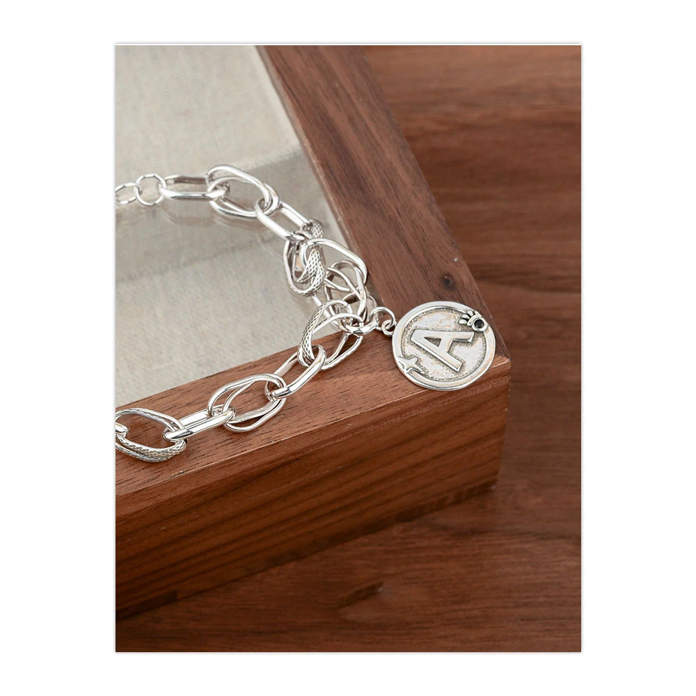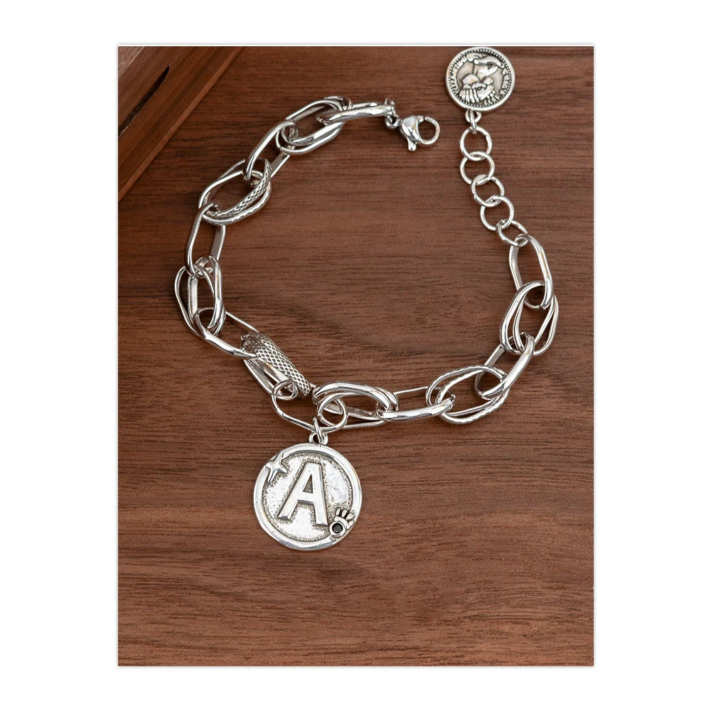 100% Solid 925 Sterling Silver Hiphop Thick Letter A Bracelet for Women Men Vintage Handmade Hasp Bracelet Birthday Gift