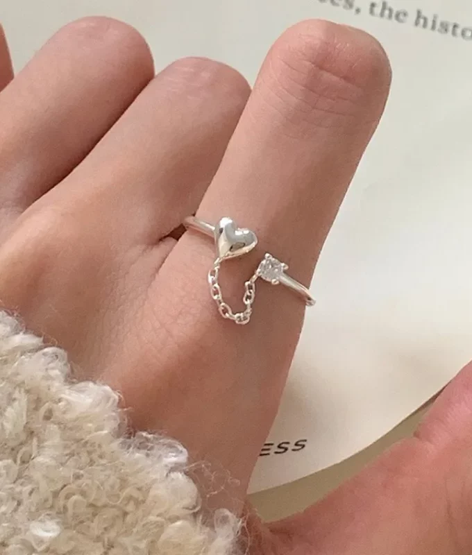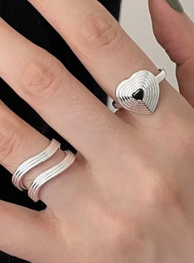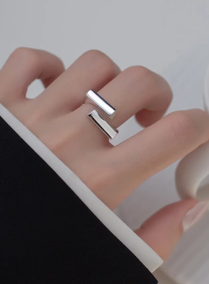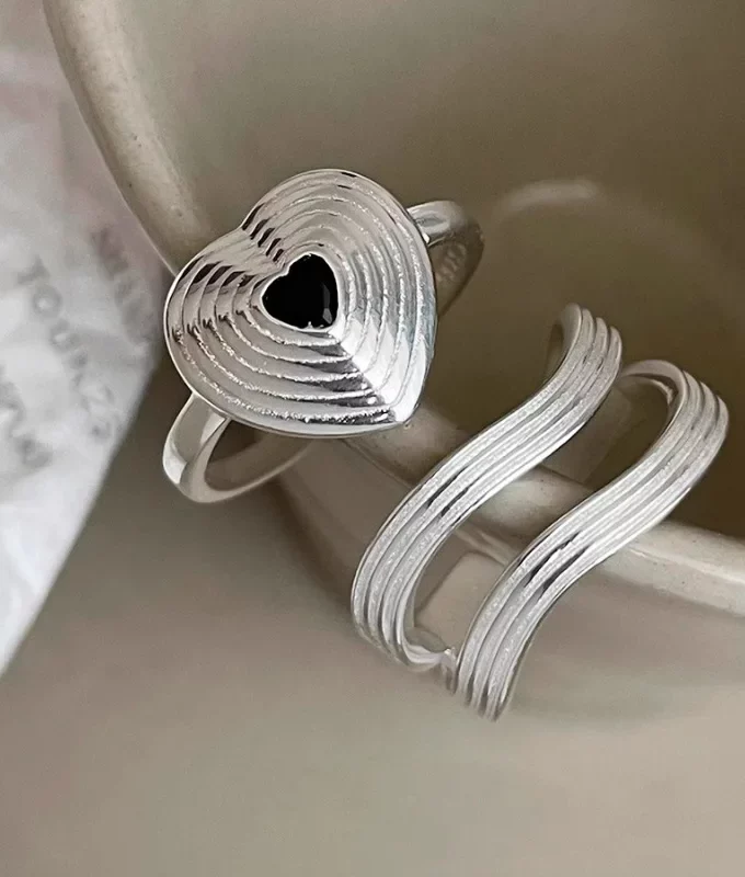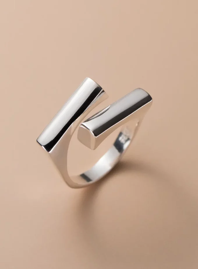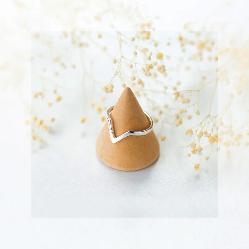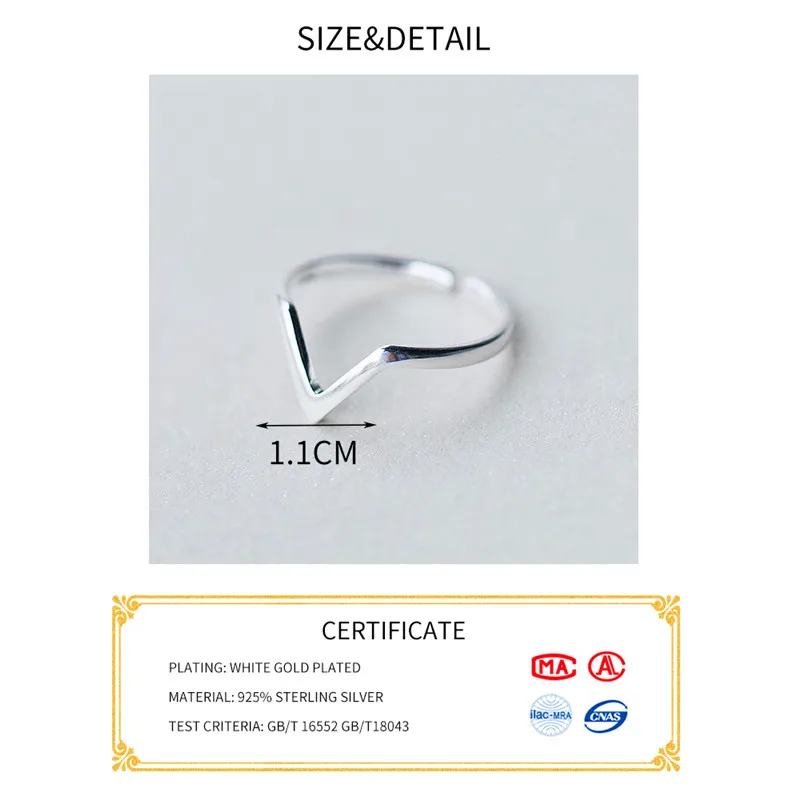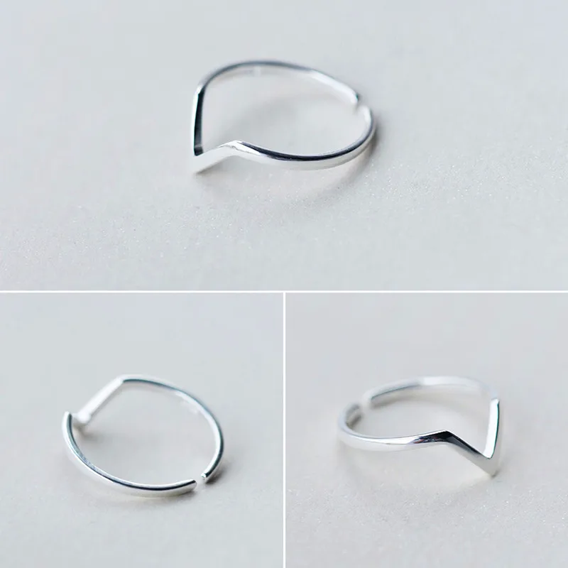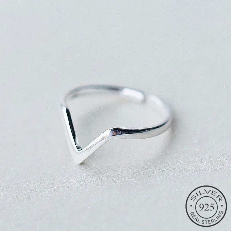 Real 925 Sterling Silver Geometric Wave Letter V Adjustable Ring Fine Jewelry For Women Party Personality Accessories