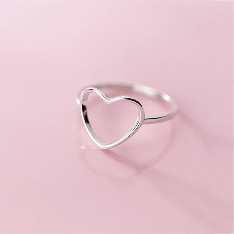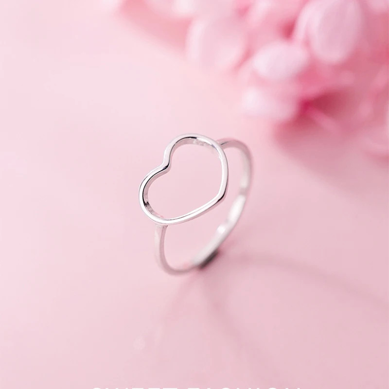 shop-silhouette 925 Sterling Silver Minimalist Ring For Women Wedding Hollow Heart Fashion jewelry Cute Valentine’s Day Gift
